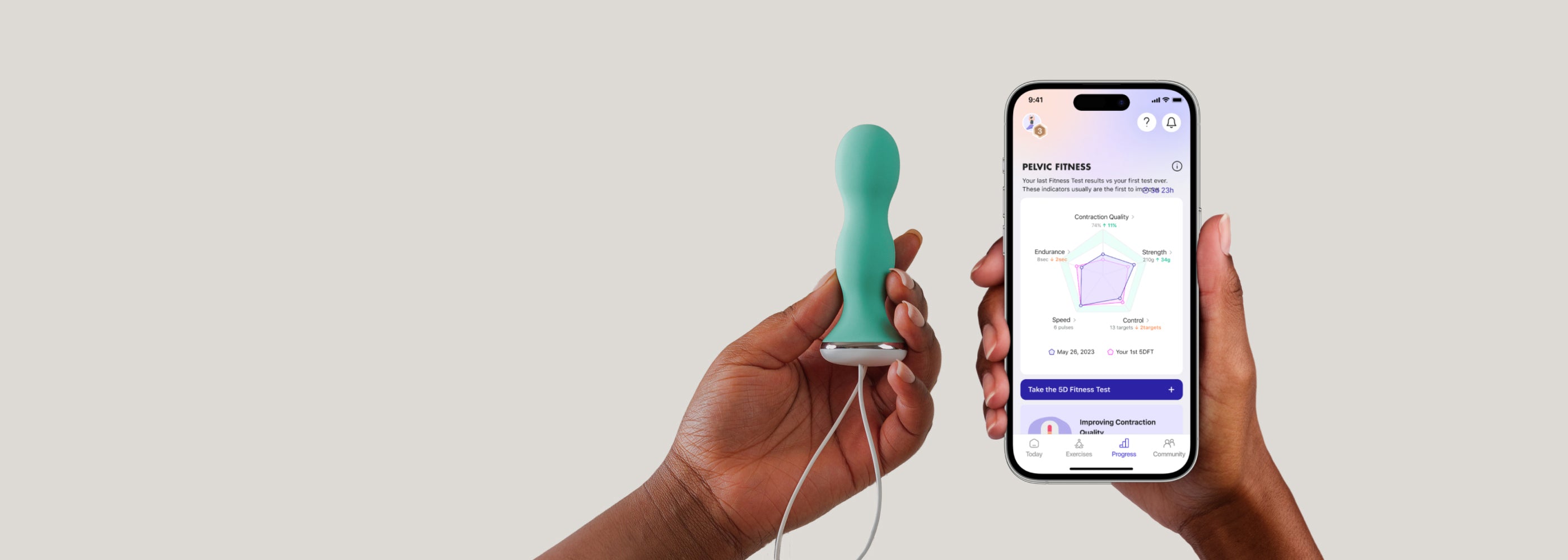 Öka din motivation och delta i roliga, expertdesignade bäckenbottenövningar. Börja med tre till fem 10-minuters sessioner per vecka för märkbara resultat. Dessutom kan du se dina muskler arbeta i realtid!